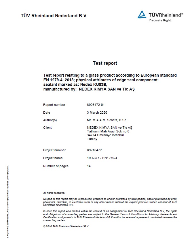 NEDEX sızdırmazlık macunları 'KU-83B' ve 'PIB-996', yeni EN normlarını ifade eden EN 1279:2018 spesifikasyonlarına uygun şekilde yapılan testleri başarıyla geçti.